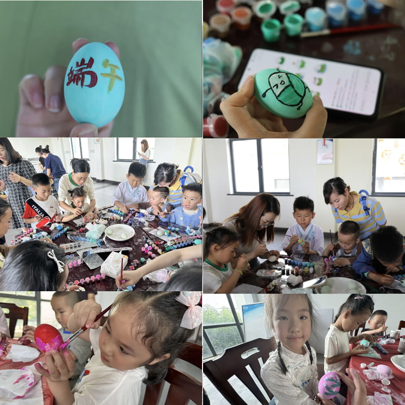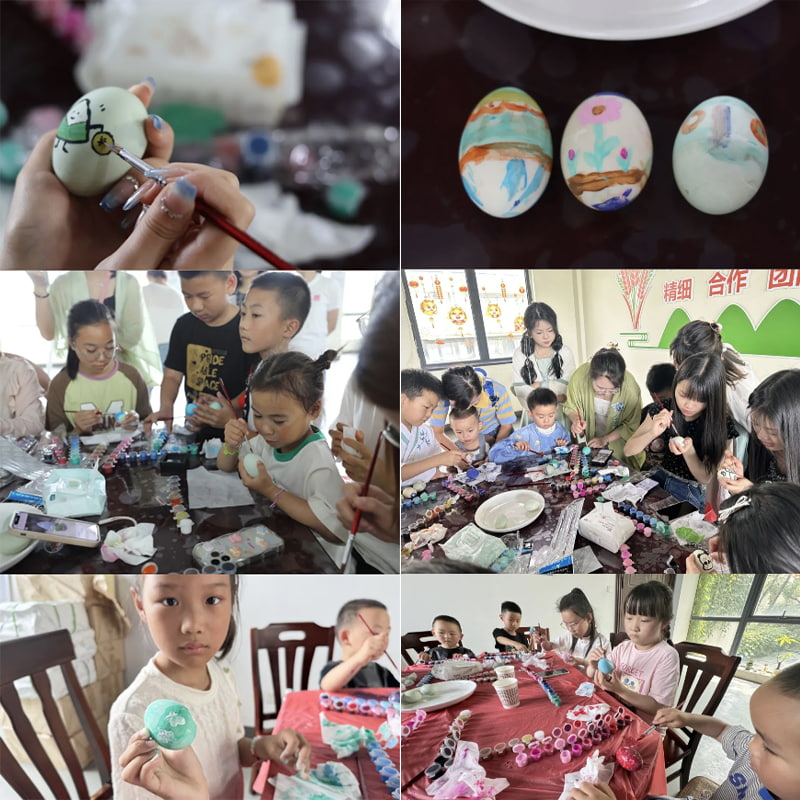 Das Unternehmen bereitete sorgfältig köstliche gesalzene Enteneier, bunte Farben und zarte Pinsel für die Kinder vor, damit die Kinder die Freude und den Spaß in ihren Herzen malen konnten.
